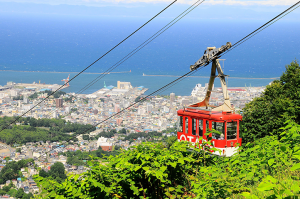 最初に向かう「小樽天狗山ロープウエイ」は、映画ロケの聖地として大人気のスポット。山頂駅には5つの展望台があり、そこから眺める小樽の街並や日本海、彼方にそびえる山々の眺望は日本遺産の構成文化財にも数えられています。そのほか山頂駅にはショップやカフェ、スキー資料館やシマリス公園、ジップラインなどのアクティビティもあり、眺望以外にも見どころがいっぱいです。