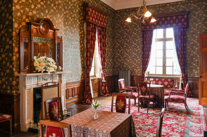 お腹を満たして次に訪れるのは「旧日本郵船小樽支店」※。1906(明治39)年に建てられた近代ヨーロッパ復興洋式の建物で、日本遺産の構成文化財であるとともに、国の重要文化財にも数えられています。館内は柱の意匠や壁紙、天井の装飾など細部まで技術がほどこされた豪奢な空間で、かつての小樽の繁栄を今に物語ります。