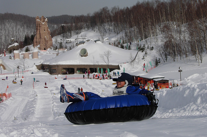 • チューブそりの1名乗りは4歳以上が対象です。3歳以下のお子様は10歳以上の方と一緒にご利用ください。