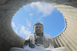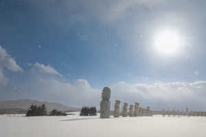 ●滝野霊園の雪のモアイ像・頭大仏殿