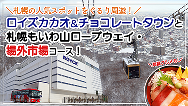 まずは北海道のお土産でも有名なロイズの体験型見学施設「ロイズカカオ&チョコレートタウン」へ!続いては札幌中央卸売市場場外市場で、北海道の新鮮な海の幸を自由にご堪能いただきます。そして旅の締めくくりは、札幌の街を一望できるもいわ山ロープウェイ。グルメと絶景を一度に楽しめる、北海道の魅力凝縮の新コースです。