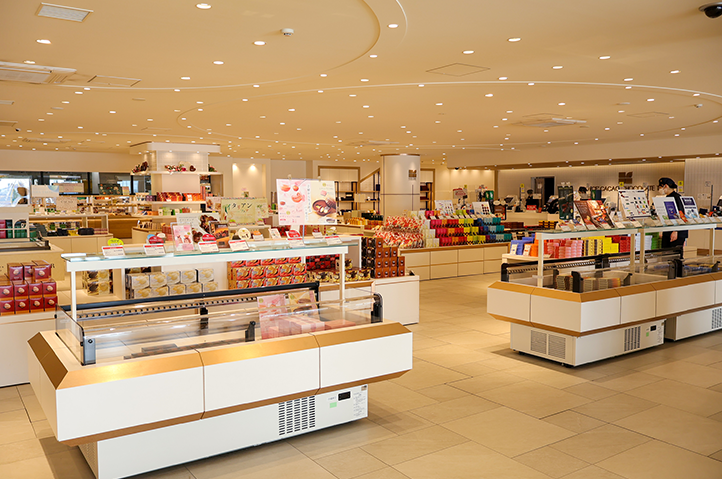・Factory shop: A spacious shop offering exclusive products and sweets available only here (1st-floor free area).